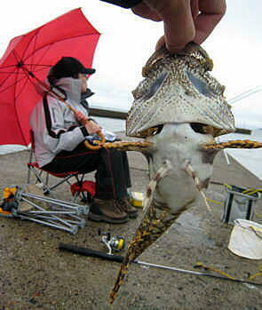 連休のせいか出漁する漁船は3艘しか見られず、この日の2艘目の出漁のときに妻にダブルで丁度良い型のクロガレ