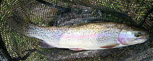 見えた魚体は幅が広くてニジマスのようで、私としては5分も費やしたのではと感じてしまったほどで、ネットインするとき