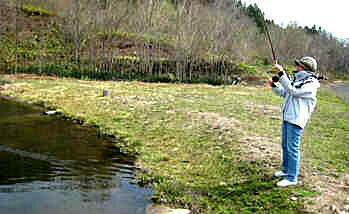 妻もフライをセットしてキャストしてみると、すぐにライズがあったがスカ・・・しかし、何度目かには慣れてきたのかヒットさ
