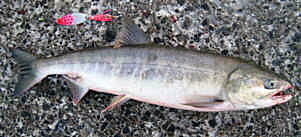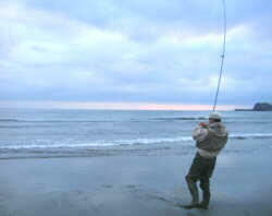 情報によると、シケの後はさっぱりだとも聞いていたが、アキアジは突然やってくることもあるので現地に着いた夜にポ