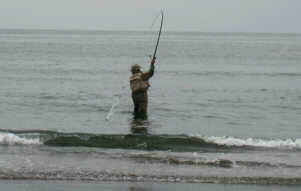 Kさん初体験の投げ釣りで銀ピカオスをGet!