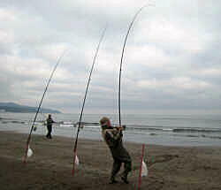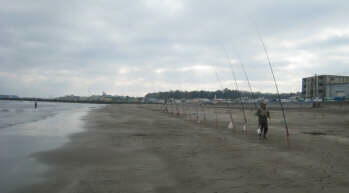 キッシーさんからの電話で、前浜にブッコミ釣りができるスペースがあるとのことで、土曜日はのんびりと砂浜での投げ