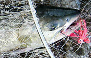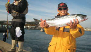 隣にいたKさんのタモ入れで無事Getしたアキアジは、4連続ボウズに悩んだ彼の苦労が実ったような超銀ピカメスだっ