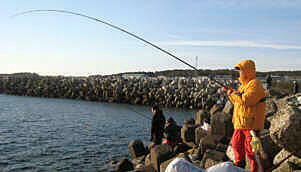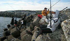 テトラポット上に座ってキャストできる丁度良い場所だったので、トローリングで釣りをしているようなショットになったが、